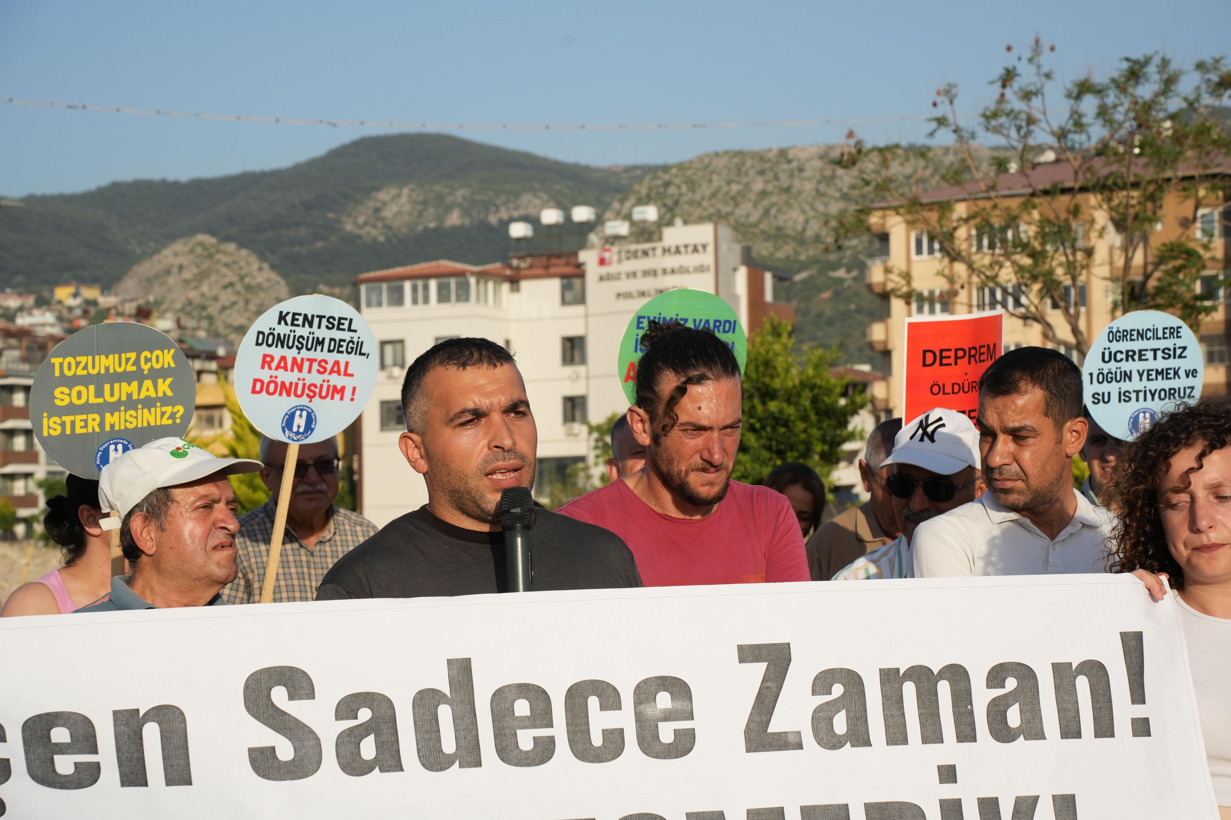 Hatay halkı olarak yaşanabilir kent için mücadele etmeye devam edeceklerini belirten Hatay Depremzede Derneği Başkanı Ekrem Deveci, “Bu kentte yaşam; barınma hakkından eğitime, sağlıktan hukuka ulaşımdan ekolojik dengeye kadar akıllara gelebilecek her meseleyle mücadele içinde sürüyor bizler için. Her alan çözülmeyen sorunlarıyla kaosa dönüştürülüyor. Bu halkı sürüklemeye çalıştığınız çaresizlik ve umutsuzluğu görüyor, iliklerimize kadar hissediyoruz ve yine de burada kalma irademizden vazgeçmiyoruz. Hatay halkı olarak koşullarımız iyileştirilene, sorunlarımız çözülene kadar susmuyor, yaşanabilir bir kent için ısrar ediyoruz. Depremin ilk günlerinde yalnız ve çaresiz bırakılan, ölüme terkedilen bu halkın çocukları olarak bizlere yaşatılanları asla unutmayacak asla affetmeyeceğiz. 16 ay geçmiş olmasına rağmen bu yalnızlığı ve çaresizliği yaşamaya da devam ediyoruz. Yetkililere soruyoruz. ‘Bir halk bunca sorunla boğuşuyorken, halkın sorunlarını çözmüyorken nasıl oluyor da konforlu bir yaşam sürmeye devam edebiliyorsunuz?’ Bizler bu belirsiz ve sorunlu yaşamı reddediyor, yetkililerin bu ülkenin vatandaşlarının sesine kulak vermesini bekliyoruz.” diyerek sözlerini tamamladı.