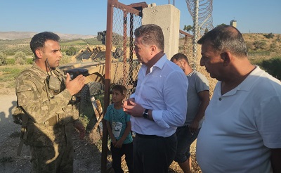 CHP Hatay Milletvekili Servet Mullaoğlu, Suriye sınırına sıfır noktada yer alan Hatay\'ın Altınözü ilçesine bağlı Hacıpaşa Mahallesi\'nde vatandaşlarla bir araya geldi.