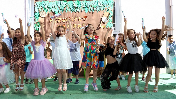 Okulun başarılı öğretmenlerinden Ömer Beyci’nin sınıfı Papatyalarda mezuniyet coşkusu tüm öğrenciler ve velilerin katılımı ile gerçekleşirken mezuniyet programı renkli görüntülere sahne oldu.Ellerinde diplomaları ile kırmızı halı üzerinde yürüyerek sahneye gelen minik öğrencileri aileleri duygu dolu gözler ile izlerken onların mezuniyet heyecanları adeta gözlerinden okunuyordu.