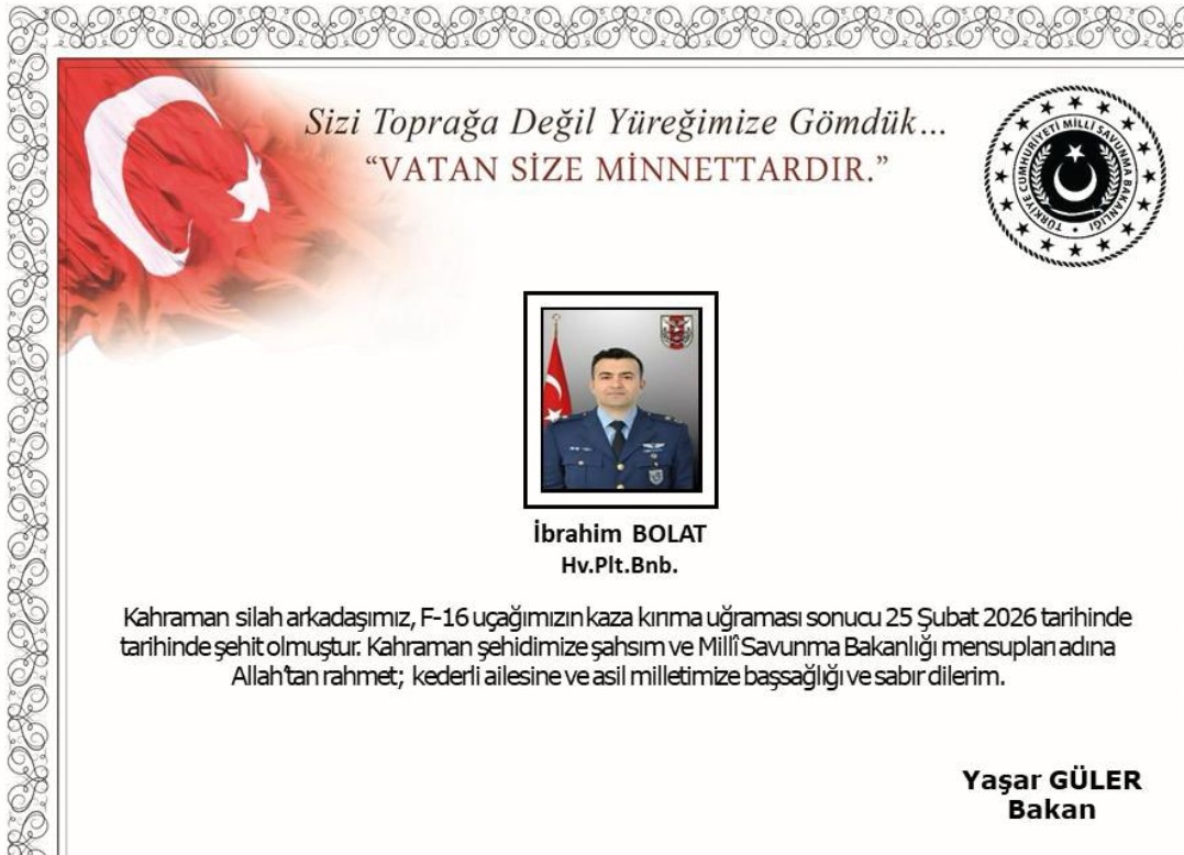 Acı haberi Millî Savunma Bakanlığı duyurdu. Bakanlıktan yapılan açıklamada “9’uncu Ana Jet Üs Komutanlığı-Balıkesir’den kalkış yapan bir F-16 uçağımız ile 00.56’dan itibaren telsiz irtibatı ve iz bilgisi kesilmiştir. Derhâl başlatılan arama kurtarma çalışmaları sonucunda uçağımızın kaza kırıma uğradığı tespit edilmiş ve uçağımızın enkazına ulaşılmıştır. Pilotumuz Hava Pilot Binbaşı İbrahim Bolat şehit olmuştur. Kazanın nedeni kaza kırım ekibinin yapacağı incelemeler sonucunda belirlenecektir. Şehit olan pilotumuza Allah’tan rahmet, ailesine, Türk Silahlı Kuvvetlerimize ve asil milletimize başsağlığı dileriz” denildi.