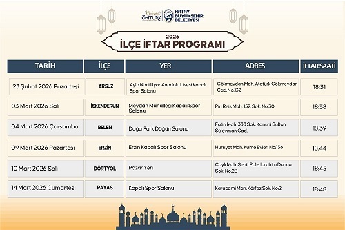 Hatay Büyükşehir Belediyesi (HBB), her yıl olduğu gibi bu yıl da Ramazan ayını kentin tamamına yayılan kapsamlı bir programla karşılamaya hazırlanıyor. 15 ilçenin tamamında kurulacak iftar sofraları ile ramazanın bereketi paylaşılacak.