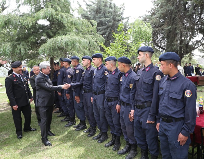 Daha sonra Jandarma personelimizle bayramlaşmak üzere İl Jandarma Komutanlığı’nda düzenlenen bayramlaşma törenine katılan ve jandarma teşkilatı mensupları ile vatani görevini yapmakta olan erlerimizle tek tek bayramlaşan Vali Doğan, “Hiçbir fedakarlıktan kaçınmayarak devletinin ve milletinin emrinde olan jandarma teşkilatı mensuplarımızın ve vatani görevlerini yapmakta olan milletimizin evlatları erlerimizin bayramını kutluyor, görevlerinizde kolaylıklar diliyorum.” dedi. (Haber Merkezi)