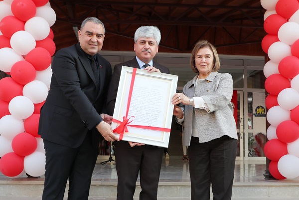 Vali Doğan, “Göreve başladığım günden bugüne, Ersin bey ile zaman zaman otururuz. Fakat Ersin bey’in dedesinin Hatay Devletinde, Milletvekili olduğunu ilk defa duydum. Bundan dolayı da ayrıca aileye şükranlarımızı, saygılarımızı sunuyorum. Ersin bey bize, mesai arkadaşlarıma çok teşekkür etti. Asıl teşekkürü kendileri, ailesi hakkediyor. Ben Türkiye Cumhuriyeti Devleti adına Hatay Valisi olarak sizlere şükranlarımı sunuyorum. Yapmış olduğunuz hayırlar sadece bu binayla sınırlı değil sizin farklı alanlarda, farklı şekillerde hayır yaptığınızı da çok iyi biliyorum, bundan dolayı da ayrıca teşekkür ediyorum. Eğitim gerçekten çok önemli bir sektör, evlatlarımızı yetiştiriyoruz. Evlat gelecek, Türkiye Cumhuriyeti Devleti’nin geleceği, ailenin geleceği demek. Türkiye Cumhuriyeti Devleti de evlatlarımız, çocuklarımız için, onların en iyi şekilde yetişmesi için hiçbir fedakarlıktan kaçınmadan, en iyi şekilde, en güzel okullarda, en iyi öğretmenlerle eğitim vermeye çalışıyoruz. Binayı gördüğümüzde, ne kadar mükemmel bir bina olduğu, binanın içerisindeki müştemilat ve donanımlar anlatıldığında okulun ne kadar donanımlı bir okul olduğu, laboratuvarından kütüphanesine kadar tüm alanların düşünülerek çocuklarımızın hizmetine sunulduğu ortada. 21. Yüzyıl gerçekten çok çetrefilli ve zor geçecek, bu coğrafya zaten geçmişten bugüne zor olan bir coğrafya ama önümüzdeki yüzyıl daha zorlu geçeceğe benziyor. Bizden 100 yıl önce ecdad, bu toprakların Türk yurdu olarak kalması için mücadele ederken büyük fedakarlıklar verdiler, canlarını, mallarını, cesaretlerini ortaya koydular ama gelecek yüzyılda da biz ve bizden sonra gelecek nesillerin aynı ferasetle, aynı duygu ve düşüncelerle yollarına devam etmesi lazım. Biz eğitim sektörüne ciddi yatırımlar yapıyoruz, bunu herkes yakinen görebilir. Bizim çocukluk zamanımızda sınıfların kapasitesi 70-80 kişi idi, şimdi Hatay’daki bütün okullarımızda öğrenci sayımız sınıf başına 29’larda, otuzun altındayız. Bu rakam neredeyse özel okullar seviyesindeki bir rakama yakın bir rakam. Bu şunu gösteriyor, biz ciddi anlamda okul, derslik yapıyoruz ve bu okullarda çocuklarımıza eğitim verecek öğretmen ataması yapıyoruz. Sadece bu yeterli mi, yeterli değil. Ciddi anlamda bir donanıma, eğitim materyaline de ihtiyaç var bu konuda da gerçekten Milli Eğitim Bakanlığı yapılması gereken ne varsa en alasıyla yapıyor. Çocuklarımızı hem kendi İlimizde, hem civar İllerde, hem de uluslararası arena da yarışabilecek eğitimli çocuklar haline getirebilmek için büyük bir gayret gösteriyoruz. Eminim ki bu çocuklar, çok güzel işler yapacaklar, bu çocuklar Türkiye’nin, bu milletin geleceğinin önünü açacaklar. Bugün Türkiye Cumhuriyeti eğer bazı sektörlerde, alanlarda dünyada adından söz ettiriyorsa, bu çocuklarımızın sayesindedir. Bugün savunma sanayisinde, yazılım alanında, sanayide, tarımda, turizmde eğer bir başarı varsa, bu başarı evlatlarımızın, çocuklarımızın olacak. Ben tekrar Ersin bey’e, değerli annesine ve ailesine şükranlarımı sunuyorum. Çok güzel bir okul yapılmış ve eğitim-öğretime başlanmıştı fakat pandemiden dolayı açılışını yapamamıştık. Bugün bu vesile ile hem açılışını yapalım, hem okuldaki bu programa da kısada olsa bir uğrayalım düşüncesiyle geldik. Hepinize katılımınızdan dolayı şükranlarımı sunuyor, herkesi saygıyla, sevgiyle selamlıyorum. Rabbim hayrınızı kabul etsin, yapmış olduğunuz bu hayır işleri de size, ülkemize ve milletimize hayırlı olsun diyorum.” dedi.