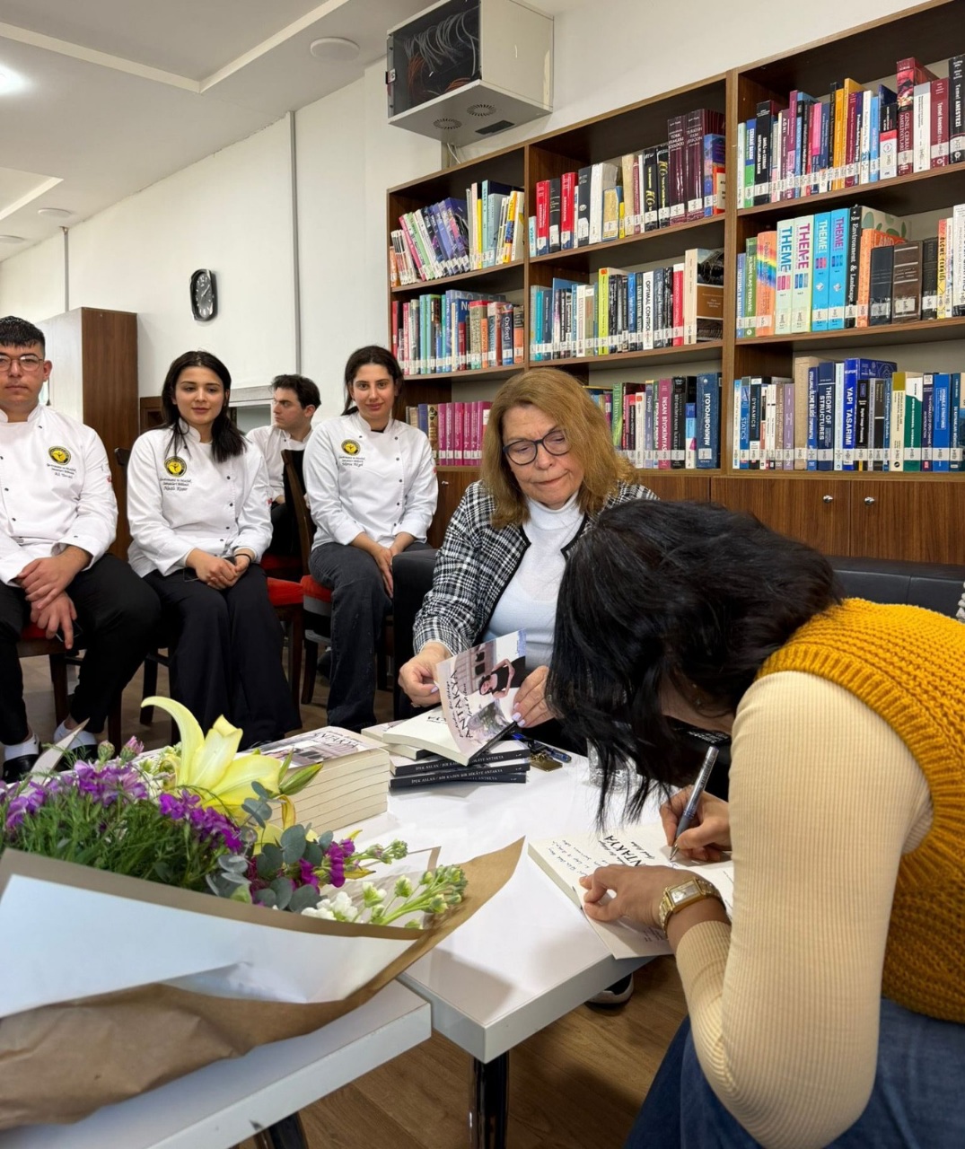 Söyleşi ve imza gününde öğrencilerle bir araya gelen Aslan, Antakya’nın kültürel zenginliklerini, mutfak mirasını ve kitapta yer alan yaşam hikâyelerini paylaştı. Gençlerin yoğun ilgisiyle karşılaşan yazar, soruları yanıtlayarak öğrencilerle keyifli bir sohbet gerçekleştirdi.