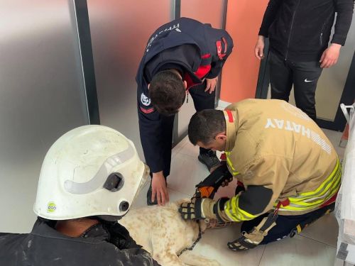 Hatay’ın Defne ilçesi Çekmece Mahallesi’nde boynuna demir zincir sıkışan köpek, itfaiye ekiplerinin müdahalesiyle kurtarıldı.
