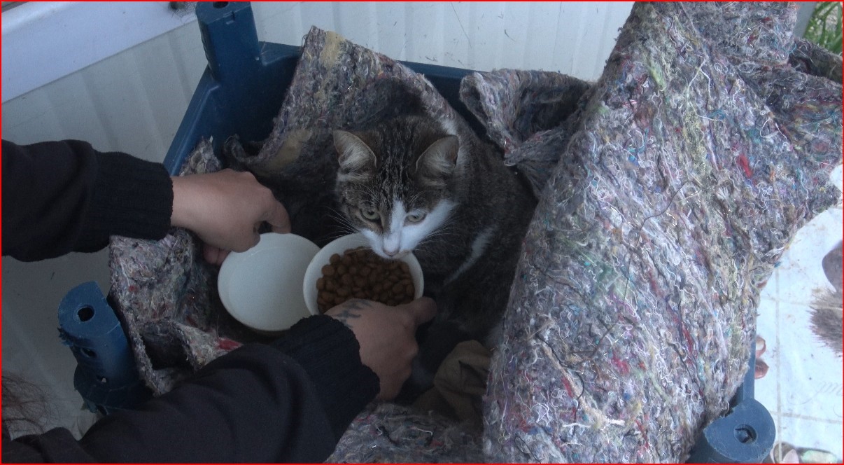 Meydan Mahallesi’ndeki konteyner kentte yaşanan olayda, yağışlı havada su kanalında doğum yapan anne kedi ve yavruları tehlike altında kaldı. Durumu fark eden vatandaşların ihbarı üzerine olay yerine gelen itfaiye ekipleri, anne kedi ve 3 yavrusunu bulunduğu yerden kurtardı. Sağlık durumlarının iyi olduğu öğrenilen kediler, bölgede yaşayan Sibel Zorluoğlu ve oğlu Doruk tarafından sahiplenildi.