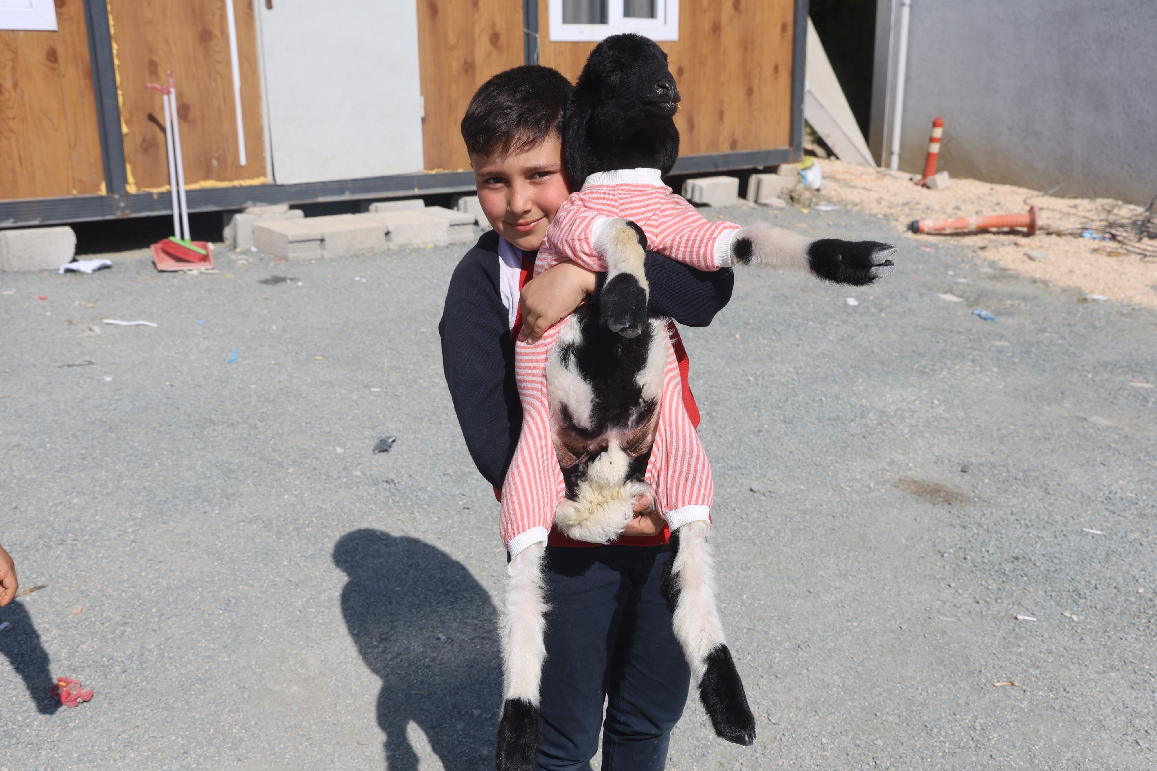 Çekmece Mahallesi’nde yaşayan Gökhan Göztepe, yeğeni Ayaz Özgün’e arkadaş olması için annesi olmayan kuzuyu sahiplendi. Eve geldiği ilk andan itibaren kuzuyla bağ kuran Ayaz, “Boncuk” adını verdiği sevimli dostuyla gün boyu vakit geçiriyor.