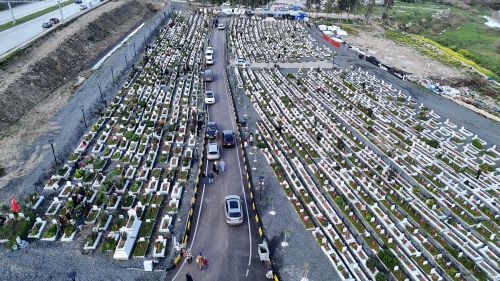 Kahramanmaraş merkezli depremlerde kent genelinde yaklaşık 25 bin kişinin hayatını kaybetmesinin ardından oluşturulan deprem mezarlığı, bayramda da en yoğun ziyaret noktalarından biri oldu. Mezarlıkları sulayıp çiçek diken vatandaşlar, gözyaşları içinde yakınlarını andı. Hatay Büyükşehir Belediyesi ise mezarlığı bayraklarla donatırken, ziyaretçilere kabirlere dikmeleri için çiçek dağıttı.
